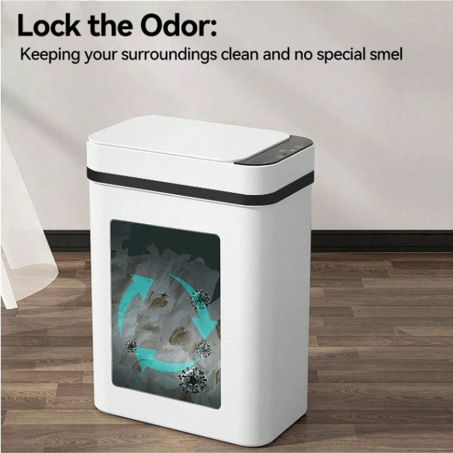 The quiet automatic lid operation keeps your environment neat and odor controlled while providing a modern, convenient waste management solution.